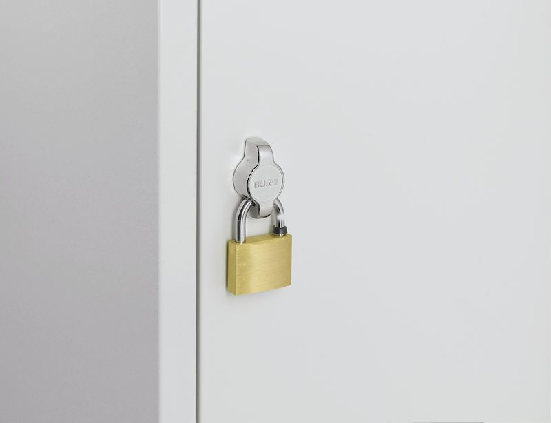 Vælg alt efter pladsforhold og behov den ønskede bredde, lågefarve og låsetype – fx med en cylinderlås eller en anordning til en hængelås (bøjletykkelse: 6 – 8 mm).