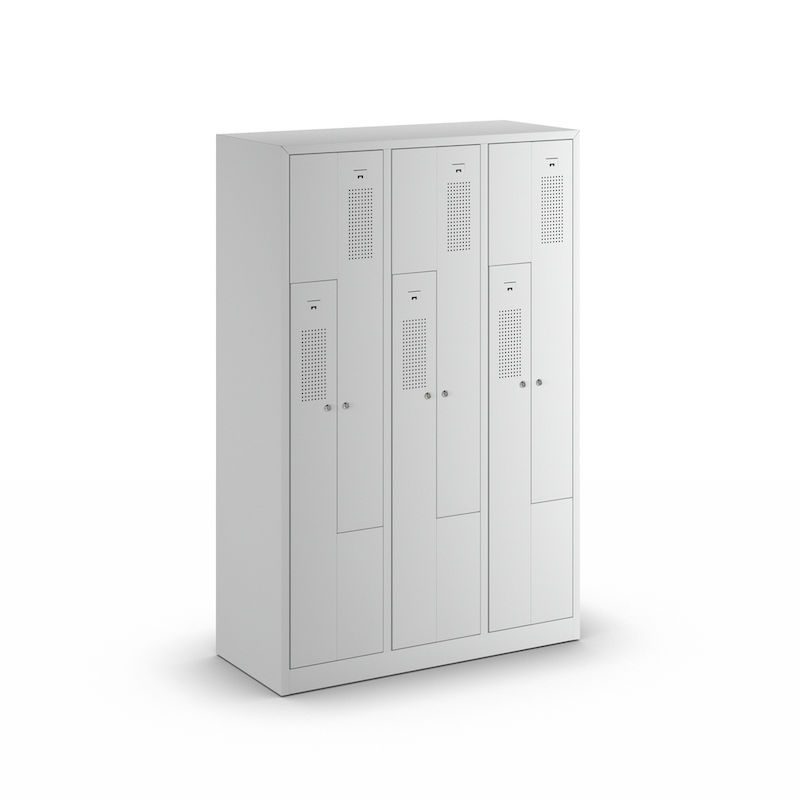 Z-omklædningsskab Amsterdam, 3 sektioner, lysegrå, bredde 1185 mm.
