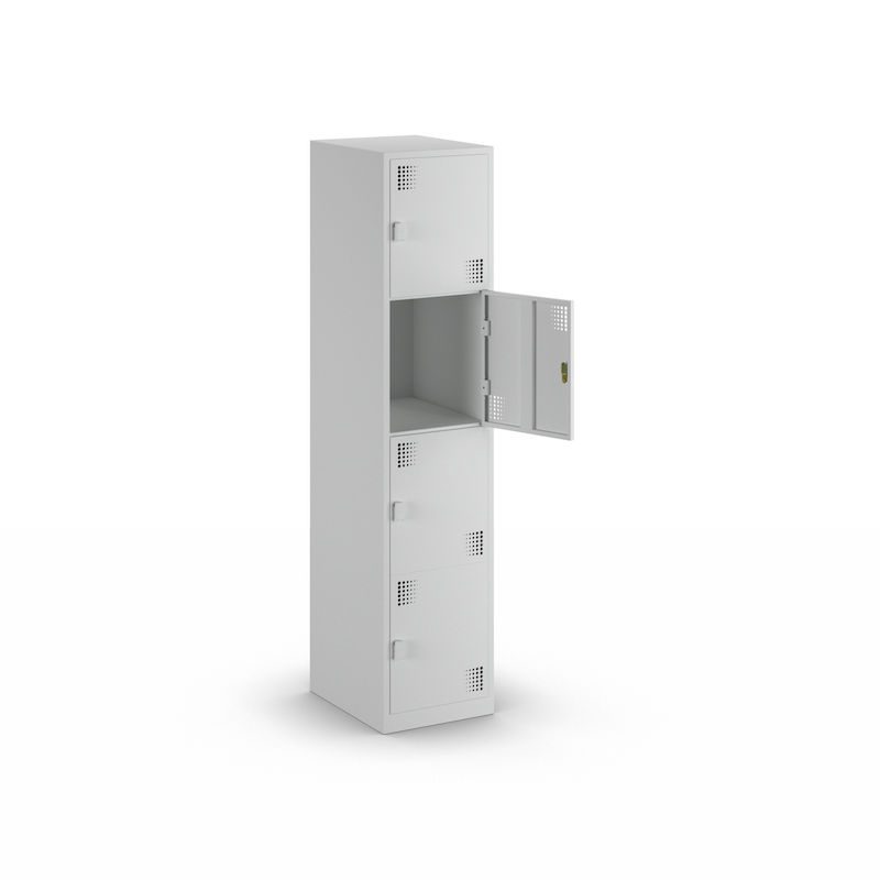 Uanset hvor Alvina-smårumsskabet med 4 skabe opstilles vil det udgøre en effektiv opbevaringsløsning i din virksomhed.