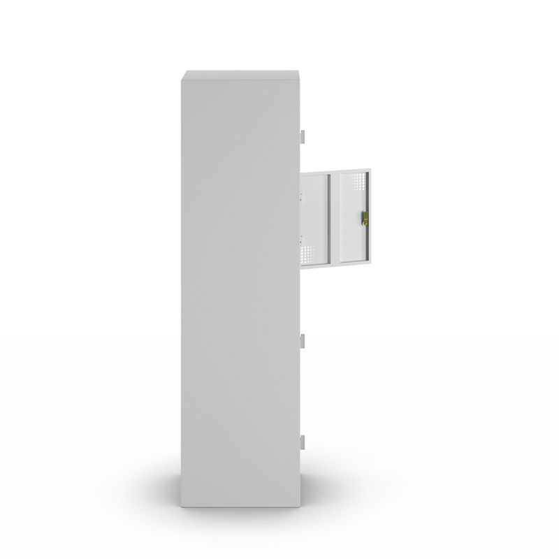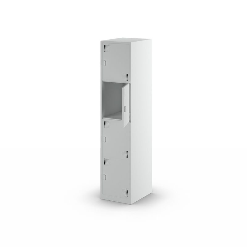 Med 4 rummelige rum over hinanden udgør smårumsskabet en gennemtænkt opbevaringsløsning til forskellige opbevaringsgenstande i omklædningsrum eller fællesområder på kontorer, på uddannelsesinstitutioner, på universiteter, hos offentlige instanser eller i industri- og produktionsvirksomheder.