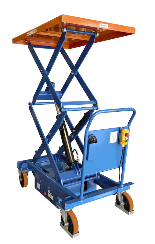 Løftebordsvogn Valter. Den elektriske løftebordsvogn med en platformsstørrelse på 1200 x 800 mm er perfekt til løft af gods på europaller. Takket være dens dobbeltsaksløftemekanisme kan platformen nemt hæves og sænkes med et tryk på en knap inden for et løfteområde fra 520 til 2000 mm. Derfor placeres gods og dele altid i en ergonomisk arbejdshøjde – med en rygskånsom og sikker håndtering som resultat.