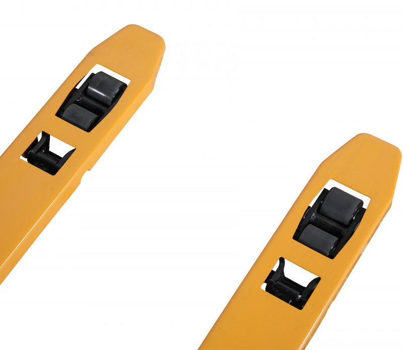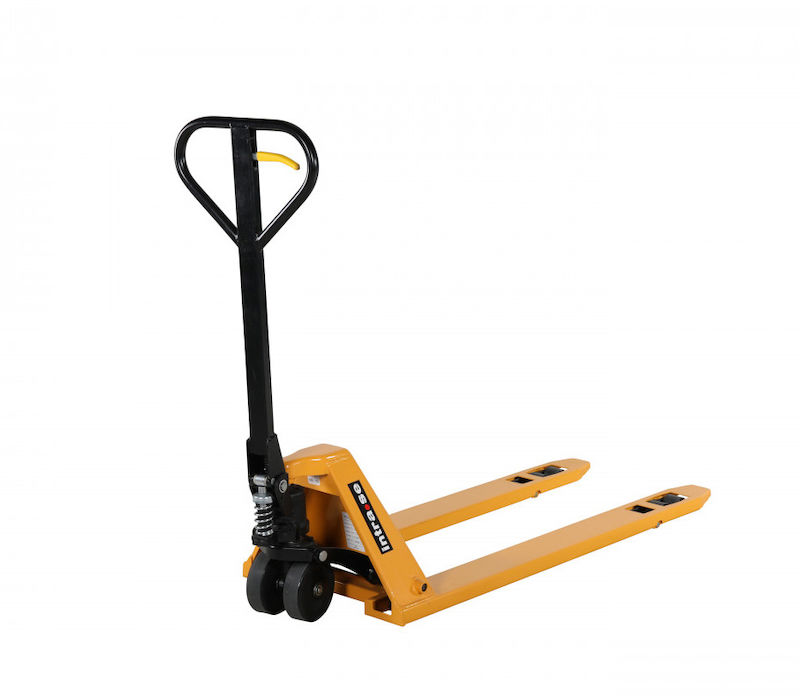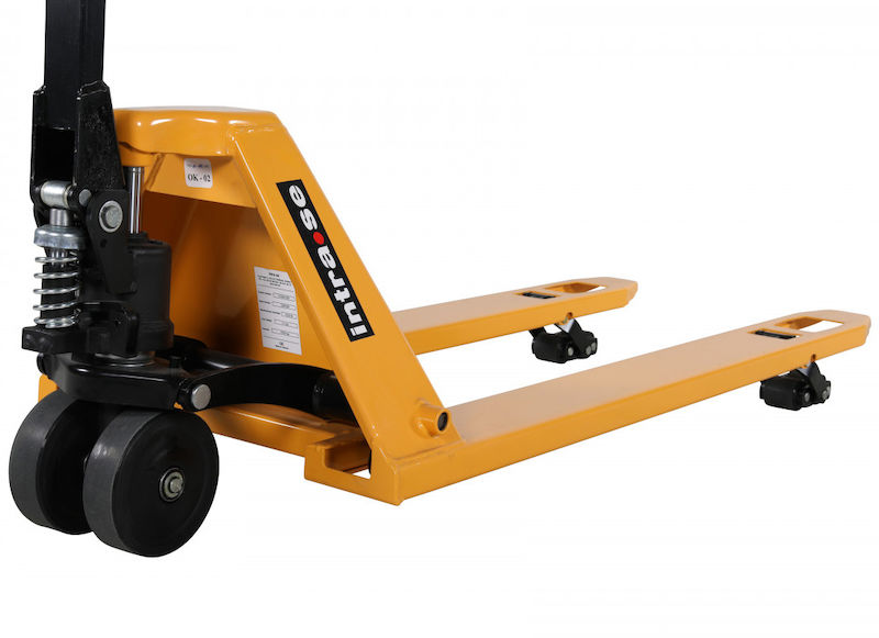 Palleløfter Lavtløftende, løftekapacitet 1500 kg. Palleløfter med ekstra lave gafler, som er praktisk ved håndtering af søpaller, Asien-paller eller andet lavt gods. Palleløfteren har polyurethanhjul, som larmer mindre, kører lettere over ujævnheder og ruller lettere ved tung last jævnført med fx nylonhjul. Palleløftere fås med boggiehjul ude i spidsen af gaflerne. Boogiehjul eller klatrehjul gør det lettere at tage sig over tærskler eller andre forhindinger med palleløfteren. Desuden giver dobbelte hjulsæt større stabilitet og slider mindre på gulvet eftersom vægten fordeles over flere hjul. Gaffelhøjde: Min 51 mm, Maks 175 mm. Løftekapacitet 1500 kg, gaffellængde 1150 mm. Styrvinkel 220 grader.