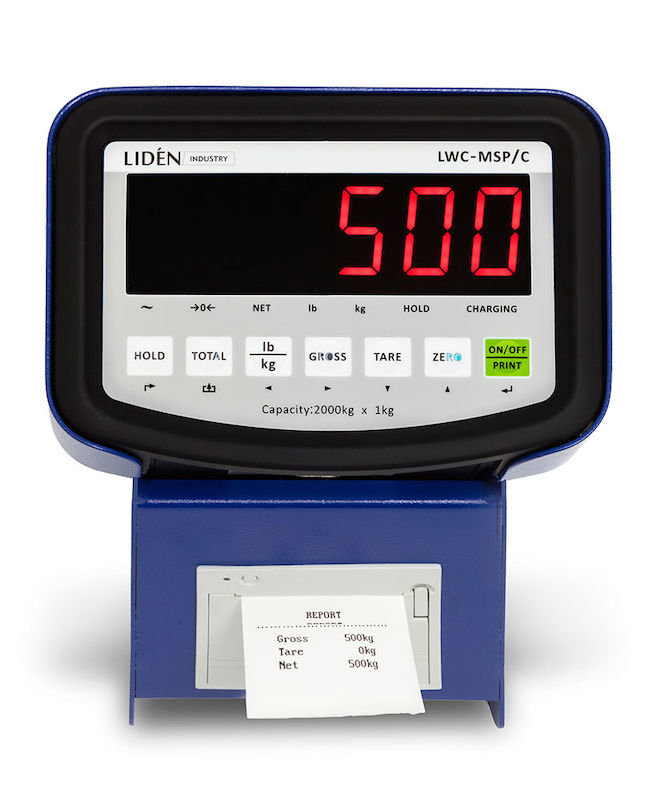 Palleløfter med vægt og printer Hermes, max. 2000 kg, +/- 1 kg. Palleløfter med indbygget vægt Hermes. Palleløfter med indbygget vægt og faste gafler. Forsynet med 4 lastceller som måler vægten. Leveres med genopladelige batterier med en drifttid på op til 40 timer. Palleløfteren håndterer uden problemer både stationær og mobil afvejning samt alle andre opgaver som en palleløfter forventes at kunne klare. Hjul med polyurethanbelægning for lydløs drift, bogie model (klatrehjul). Leveres med et stort tydeligt 30 mm LED display. Findes i to modeller: med vægt eller med vægt og printer. RS232 udgang til kommunikation.