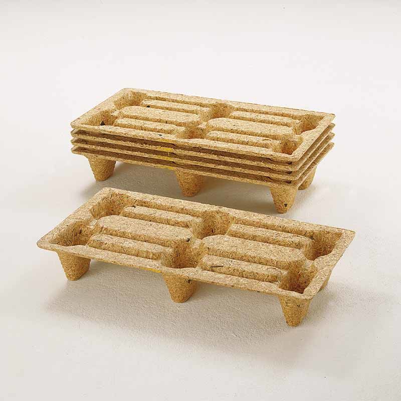 Palle Træfiber, LxB 800x600 mm, max 1000 kg, 10 stk/pk. Engangspalle i træfiber. Kan stables med koniske fødder. Fremstillet i genbrugstræ og savværks affald. Kan genbruges og er biologisk nedbrydeligt. Varmebehandlet og opfylder kravene i henhold til IPPC for ISPM15. Perfekt til transport til hele verden. Lavet med varme og tryk og er derfor helt fri for træ skadedyr. Lukket bund. Krymp- og strækfilm egnet takket være afrundede hjørner. Fås i forskellige størrelser og belastninger.
