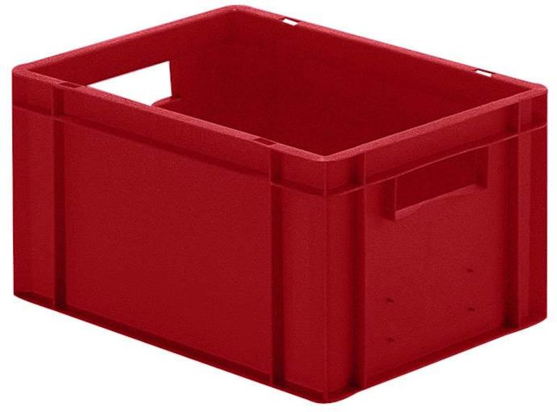 Eurokasser Teff med lukkede sider og bund, LxBxH 400 x 300 x 210 mm, rød, 5-pak. Stabelkasser i euro-format, vægge og bund lukkede. Plastkasser til næsten ethvert behov på lager, i produktion og til transport Af levnedsmiddelgodkendt kvalitets-polypropylen Stor stabilitet Temperaturbestandig fra –20 °C til +60 °C, kortvarigt op til +90 °C Modstandsdygtig mod mange typer af syre og lud Størrelserne er afstemt efter pallemålene 1200 x 800 mm og 800 x 600 mm Tilpasset til rullebane Kan også stables med låg uden problemer. Beholderne leveres i prisgunstige pakker.