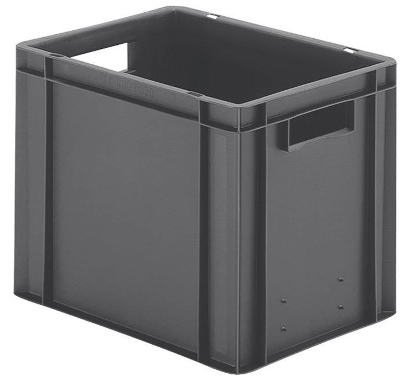 Eurokasser Teff med lukkede sider og bund, LxBxH 400 x 300 x 320 mm, grå, 5-pak. Stabelkasser i euro-format, vægge og bund lukkede. Plastkasser til næsten ethvert behov på lager, i produktion og til transport Af levnedsmiddelgodkendt kvalitets-polypropylen Stor stabilitet Temperaturbestandig fra –20 °C til +60 °C, kortvarigt op til +90 °C Modstandsdygtig mod mange typer af syre og lud Størrelserne er afstemt efter pallemålene 1200 x 800 mm og 800 x 600 mm Tilpasset til rullebane Kan også stables med låg uden problemer. Beholderne leveres i prisgunstige pakker.