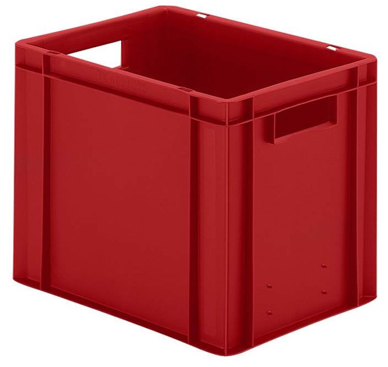 Eurokasser Teff med lukkede sider og bund, LxBxH 400 x 300 x 320 mm, rød, 5-pak. Stabelkasser i euro-format, vægge og bund lukkede. Plastkasser til næsten ethvert behov på lager, i produktion og til transport Af levnedsmiddelgodkendt kvalitets-polypropylen Stor stabilitet Temperaturbestandig fra –20 °C til +60 °C, kortvarigt op til +90 °C Modstandsdygtig mod mange typer af syre og lud Størrelserne er afstemt efter pallemålene 1200 x 800 mm og 800 x 600 mm Tilpasset til rullebane Kan også stables med låg uden problemer. Beholderne leveres i prisgunstige pakker.