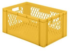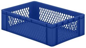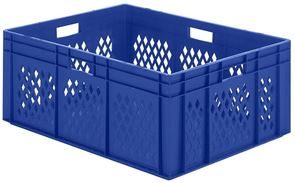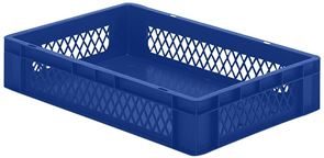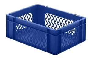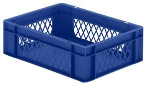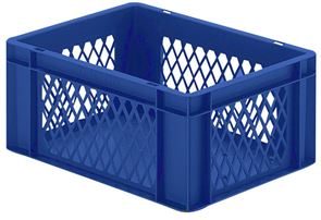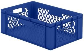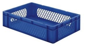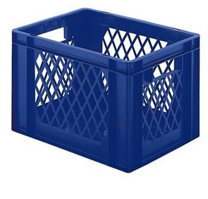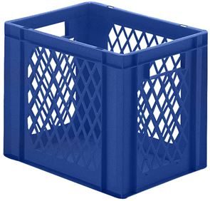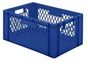Eurokasser Teff med åbne sider, LxBxH 400 x 300 x 320 mm, blå, 5-pak. Stabelkasser i euroformat, vægge med åbninger, bund lukket. Til næsten ethvert behov på lager, i produktion og til transport Af levnedsmiddelgodkendt kvalitets-polypropylen Stor stabilitet Temperaturbestandig fra –20 °C til +60 °C, kortvarigt op til +90 °C Modstandsdygtig mod mange typer af syre og lud Størrelserne er afstemt efter pallemålene 1200 x 800 mm og 800 x 600 mm Tilpasset til rullebane Kan også stables med låg uden problemer. Beholderne leveres i prisgunstige pakker.
