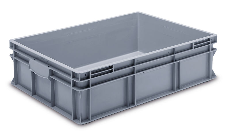 Plastkasse Alfred, lastkapacitet 20 kg, sølvgrå, volumen 90 l, udvendig højde 220 mm, 2-pak.