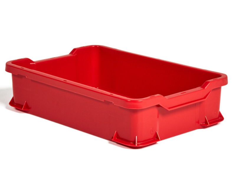 Plastkasse, Uniback, stabelbare, volumen 24 liter, rød. Temperaturbestandig fra minus 40 grader til plus 90 grader. Kasser med enkle, store flader og plan bundkonstruktion, der klarer alle transportbaner. Afløbshuller i sargen til opvaskevand. Store, kraftige udvendige håndtag giver et godt greb. Luftspalte ved håndtaget hindrer kondensdannelse på opbevaret gods ved stabling. Udført i HD-polyeten med temperaturholdbarhed fra -40 til +90 grader celsius. Fødevaregodkendt.