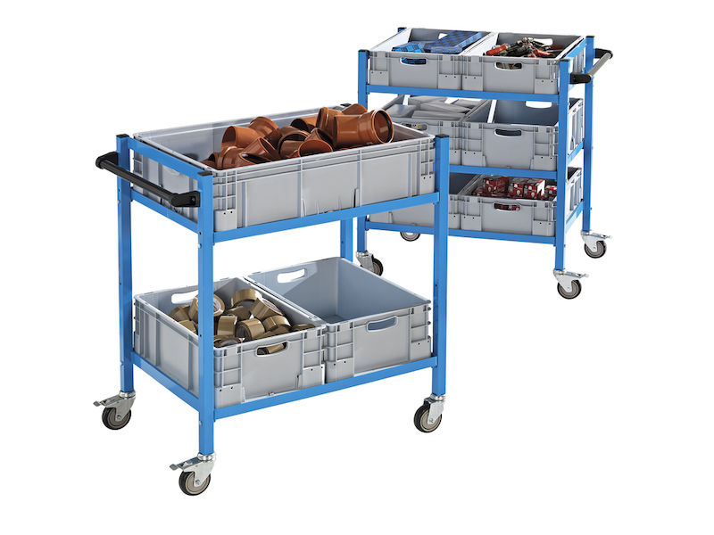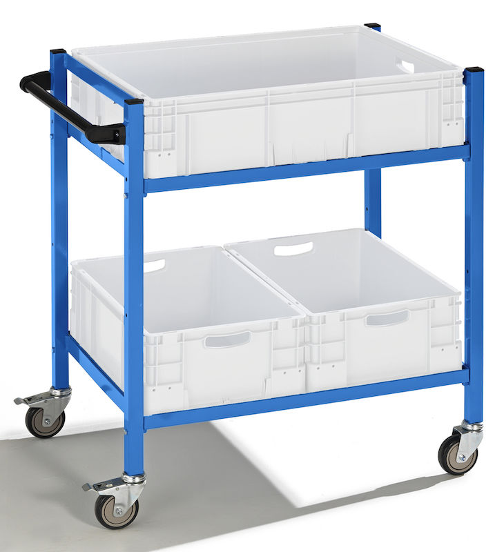 Plukvogn Kayla, LxBxH 970 x 610 x 1045 mm, 2 hylder. Pulverlakeret stålkonstruktion, som standard i lyseblå RAL 5012.