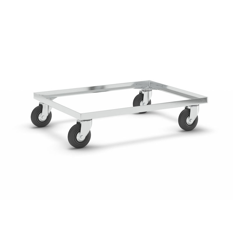 Rullevogn til kasser, stålramme, kap. 250 kg . Holdbar stålkonstruktion, kvalitetspulverlakering, udstyret med 4 letgående drejelige hjul.