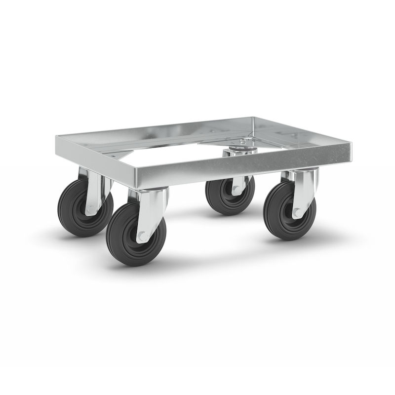 Rullevogn til kasser, stålramme, kap. 250 kg, med massive gummihjul, lastkapacitet 250 kg, lastareal 410 x 310 mm