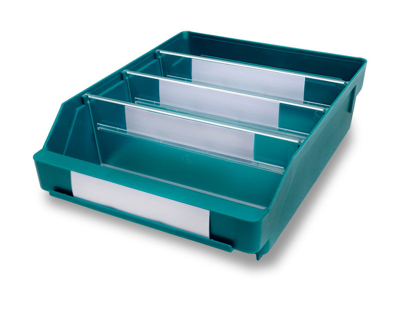 Lagerkasse Stemo, 15-pak. Smarte reoltilpassede lagerkasser til forskellige hyldedybder, der passer til alle typer reoler.