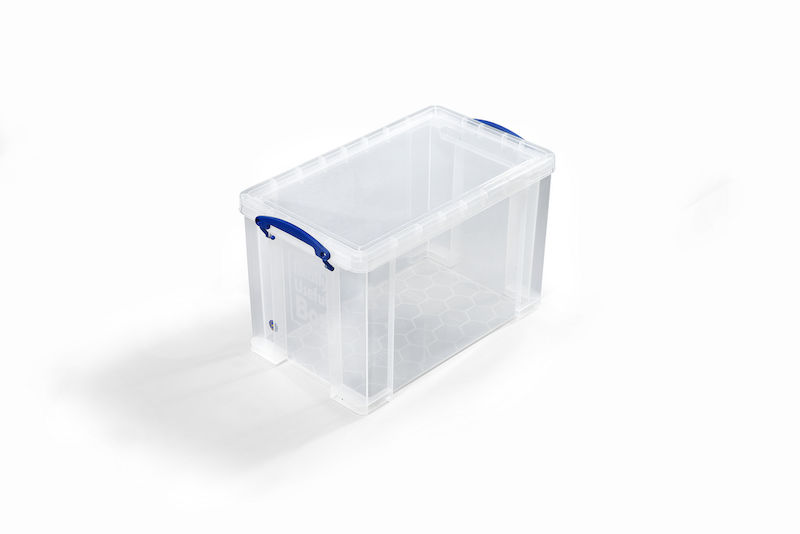 REALLY USEFUL plastkasse Benjamin, med låg, vol 24 l, LxBxH 465 x 270 x 290 mm, 2 stk. Leveres komplet med låg, der sættes på kassen ved hjælp af bøjlelåse.