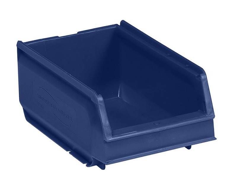 Plukkasse fra Schoeller Allibert, stabelbar,LxBxH 170x105x75 mm, blå. Stabelbare med stort indvendigt volumen, ideelle til opbevaring af småting. Stor plukåbning, som kan forsynes med frontluge i plexiglas. Gedigne grebkanter på for- og bagkant. Stabelbar, profileret skalkonstruktion med høj vridestivhed. Fremstillet i polypropen. Tåler syrer, maskinolier og de fleste kemikalier. Temperaturbestandighed fra -20 grader til +90 grader Celsius.