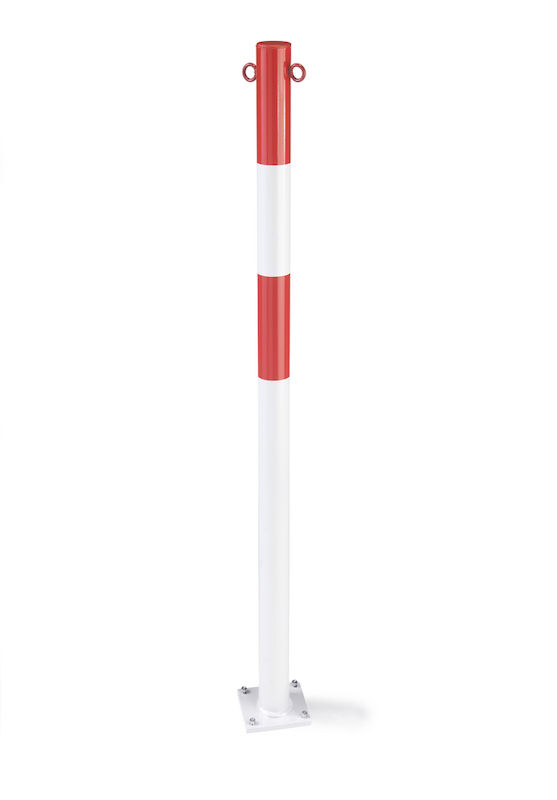 Afspærringsstolpe Jakob, til fastboltning, Ø 60 mm, rød / hvid, plastbelagt. Stolper med 2 øjer.