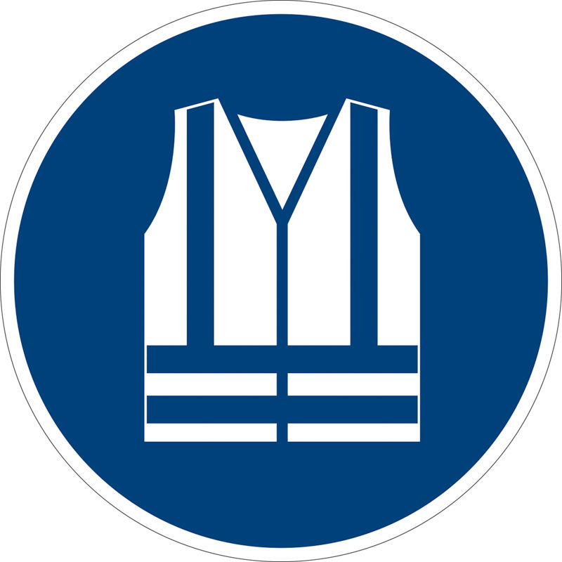 Påbudsskilt, sikkerhedsvest påbudt, Ø200 mm, plast, 10-pk . Påbudsskilte for let at se hvilken handling den aktuelle situation kræver. Skilte i aluminium eller plast. Fremstillet i henhold til ISO 7010/ASR A1.3. UV-resistent - til indendørs- og udendørsbrug.