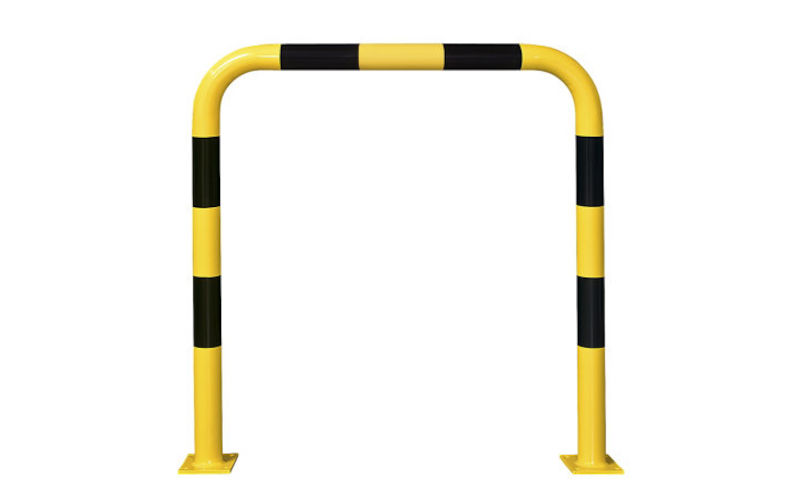 Påkørselsværn med robuste bøjler af kvalitetsstål. En kraftig beskyttelse til sikring af mennesker og inventar. Bøjlens diameter er 76 mm og godstykkelsen er 3 mm. Med bløde bøjninger – ingen svejsede sammenføjninger. Bundpladen ((160x140x10 mm) kan boltes fast. Fra 750 mm bredde, med sorte signalstriber. Påkørselssikringen til indendørsbrug er grundmalet, udendørs modeller er varmgalvaniseret. Alle (over 750 mm) er overtrukket med gul plast og sorte signal striber.