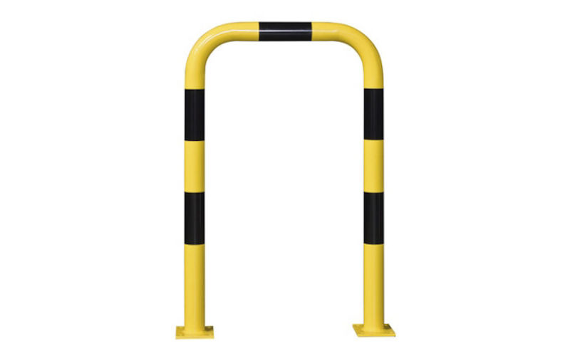 Påkørselsværn med robuste bøjler af kvalitetsstål. En kraftig beskyttelse til sikring af mennesker og inventar. Bøjlens diameter er 76 mm og godstykkelsen er 3 mm. Med bløde bøjninger – ingen svejsede sammenføjninger. Bundpladen ((160x140x10 mm) kan boltes fast. Fra 750 mm bredde, med sorte signalstriber. Påkørselssikringen til indendørsbrug er grundmalet, udendørs modeller er varmgalvaniseret. Alle (over 750 mm) er overtrukket med gul plast og sorte signal striber.