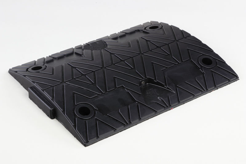 Vejbump Tilak, gummi, midterstykke, LxBxH 500x420x50 mm, sort. Vejbump Tilak reducerer farten på parkeringspladser, veje og industriområder. Vejbump i højkvalitets gummi, gennemfarvet nyt materiale. Sort eller gul. Midterstykkerne har refleks på hver side. Enkelt at sammenkoble i sort/gult mønster, som giver god oppmærksomhed og synlighed.