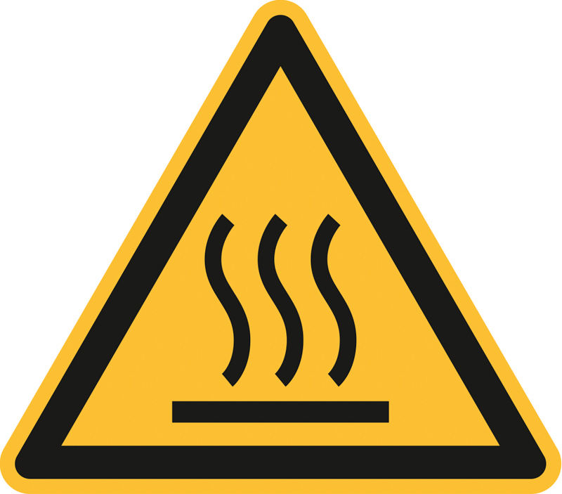 Advarselsskilt, advarsel om varm overflade, Ø200 mm, plast, 10-pk. Advarselsskilte i tilfælde af potentiel fare. Skilte i aluminium eller plast. Fremstillet i henhold til ISO 7010/ASR A1.3 og BGV A8. Placeres synligt for at undgå ulykker. UV-resistent - til indendørs- og udendørsbrug.