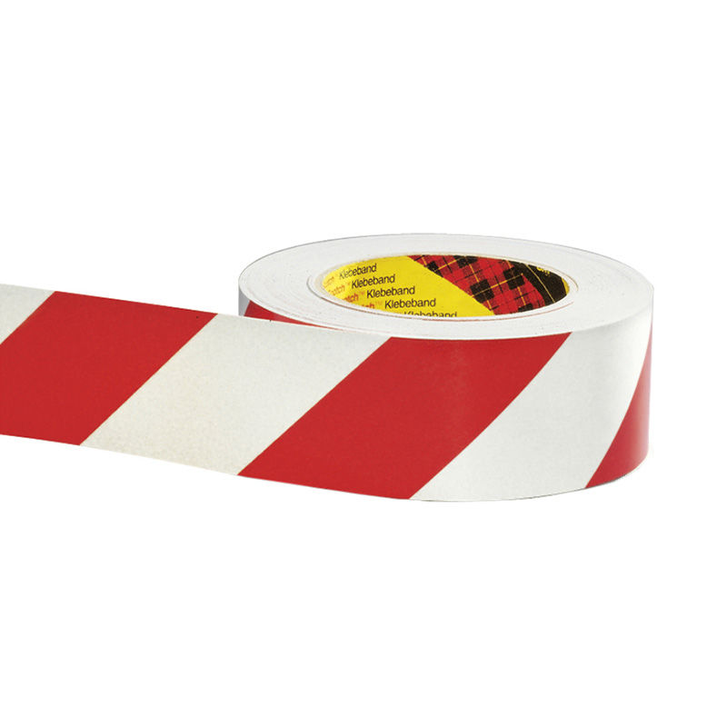 Advarselstape med reflex, L 25 m/rulle, B 50 mm, rød/hvid, 2 stk/pk. Selvklæbende advarsels tape til permanent mærkning. Reflekterende og holdbar advarsels tape med meget god synlighed under alle lysforhold. Fastgøres hurtigt og let på glatte og støvfrie overflader. Kan fjernes ved behov. Pakke med 2 ruller, en pegende mod venstre og en pegende mod højre.