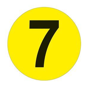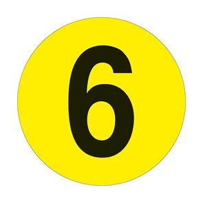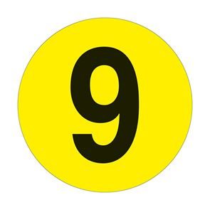 Gulvmarkering PVC, Ø 190 mm, 10 stk/pk, tal 9. Gulvmærkning PVC, tal. Gulvmarkeringer i PVC med en stærk selvklæbende bagside. Perfekt til gange, korridorer og andre rum på lageret. Gulvmarkering med høj synlighed. Designet til at klare håndteringen på et moderne lager. Til påføring på gulve eller andre rene, glatte overflader. Skiltene har Ø 190 mm med sort tryk på gul bund. Kan bestilles med tallene 0-9. Sælges i pakker med 10 stk.