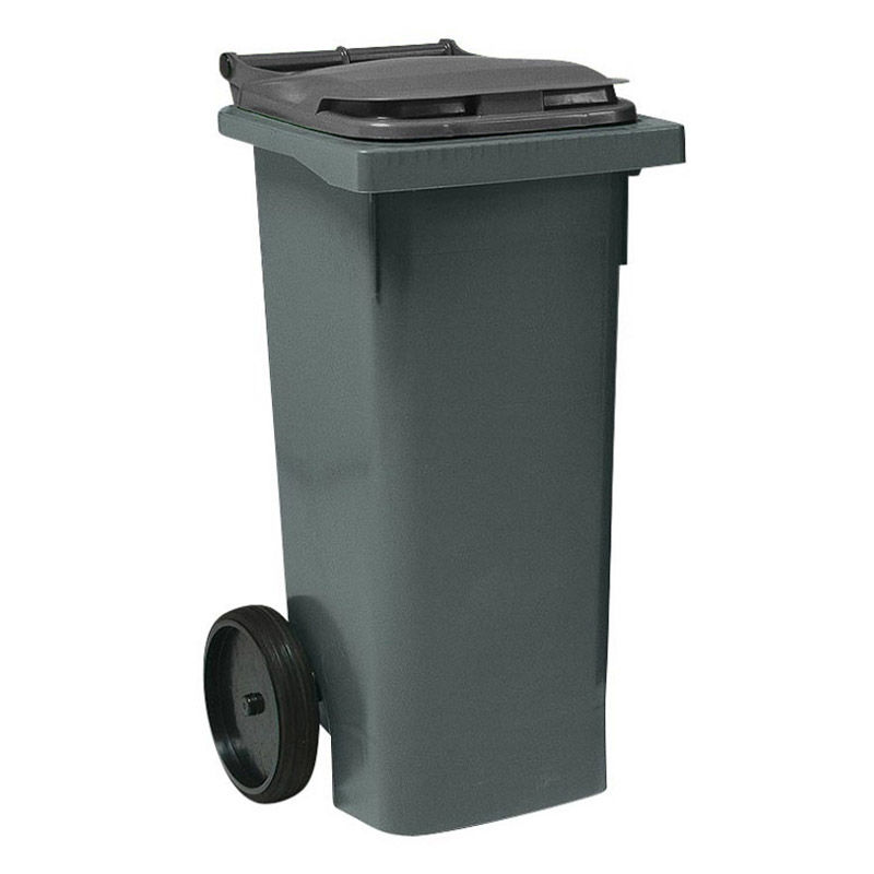 Affaldsbeholder 80 liter, med låg, grå/grå. Affaldscontainer / affaldsbeholder PWS med låg og på hjul. En solid skraldespand med utallige anvendelsesmuligheder. Uundværlig på arbejdspladsen. Affaldsbeholderen kan anvendes som skraldespand, papircontainer, glascontainer, til indsamling af metal eller andet genbrugsaffald. Affaldsbeholderen er fremstillet af UV-stabil HD-polyeten og fås i forskellige størrelser mellem 80 og 370 liter. Form, størrelse og hjulenes placering er et resultat af grundige ergonomiske studier. Affaldsbeholderen er derfor let at flytte, tømme og rengøre. DIN certificerede i henhold til EN 840,. Alle skraldespande er grå, mens lågene er i forskellige farver.