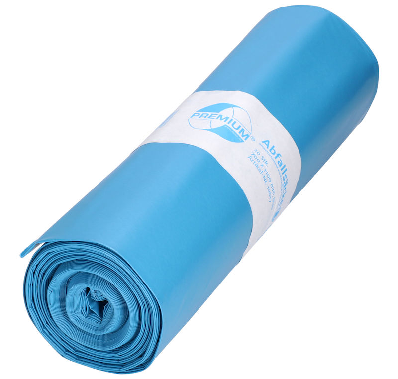Affaldspose Mirella, BxH 700 x 1100 mm, materialetykkelse 80 µm, blå, 200-pak. PREMIUM-affaldssække er lavet af udvalgt genbrugsgranulat. Topmoderne produktionsmetoder sikrer en ensartet høj kvalitet – det er det, det registrerede varemærke PREMIUM står for. Affaldsposerne, der er lavet af LDPE, har en usædvanligt høj gennembrudsresistens og slidstyrke. Vores PREMIUM-produkter overholder ligeledes ekstremt høje krav.