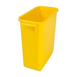 Affaldssorteringsbeholder Gilen, 60 L, gul. Stabil affaldssorteringsbeholder af plast, der kan anvendes som skraldespand, stor papirkurv eller til affaldssortering på industrigulvet, i pauserummet eller på kontoret. Kan også anvendes til opbevaring af fx dyrefoder, råvarer eller som opsamlingsbeholder til diverse ting som fx glemmetøj fundet offentlige steder.