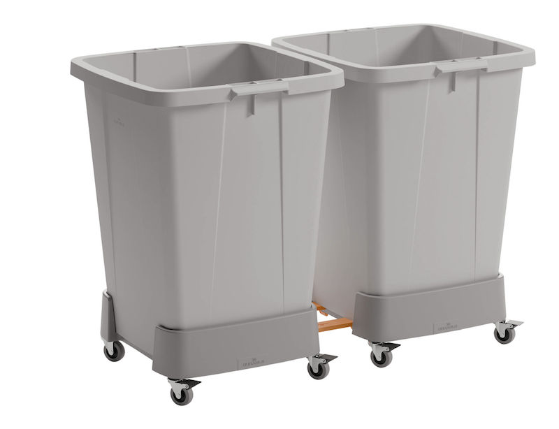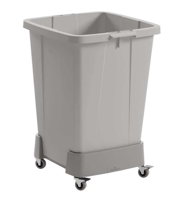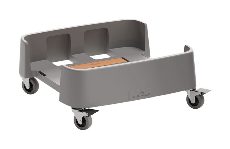 Vogn DURABIN® Durabin, 4 drejelige hjul, 90 liter. Maksimer effektivitet og bæredygtighed med vores vogn til DURABIN® 60 l- og 90 l-affaldsbeholdere. Vogn er produceret af mindst 80 % genanvendt polypropylen (undtagen de drejelige hjul) og kombinerer miljøbevidsthed med robust funktionalitet.