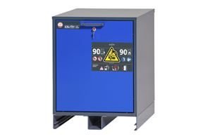 Batterikabinet Aspås, HxBxD 780 x 593 x 574 mm, 1 skuffe. – Den standardmonterede og potentialfrie udløser sender også i tilfælde af alarmer til et forbundet akutberedskab, hvis der er arbejdsrum, der ikke er i brug.