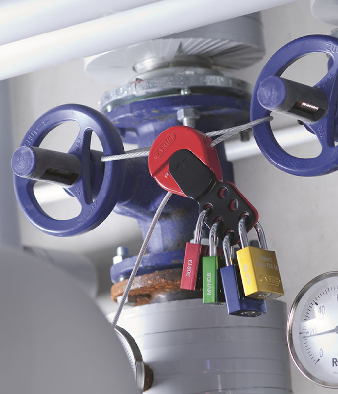 Kabellås Michael, til 6 låse, 12-pak, L 1 m, Ø 41 mm. Universalløsning til LOTO: Kablet kan bruges til at sikre ventiler, håndhjul, beslag eller adgangspunkter mod uvedkommendes adgang. Safelex™-kabellåsene fås med kabler i forskellige længder fra 1 til 5 meter. Klemmemekanismen sikrer et fast greb og kan justeres ved behov. Den sikres med op til seks hængelåse.