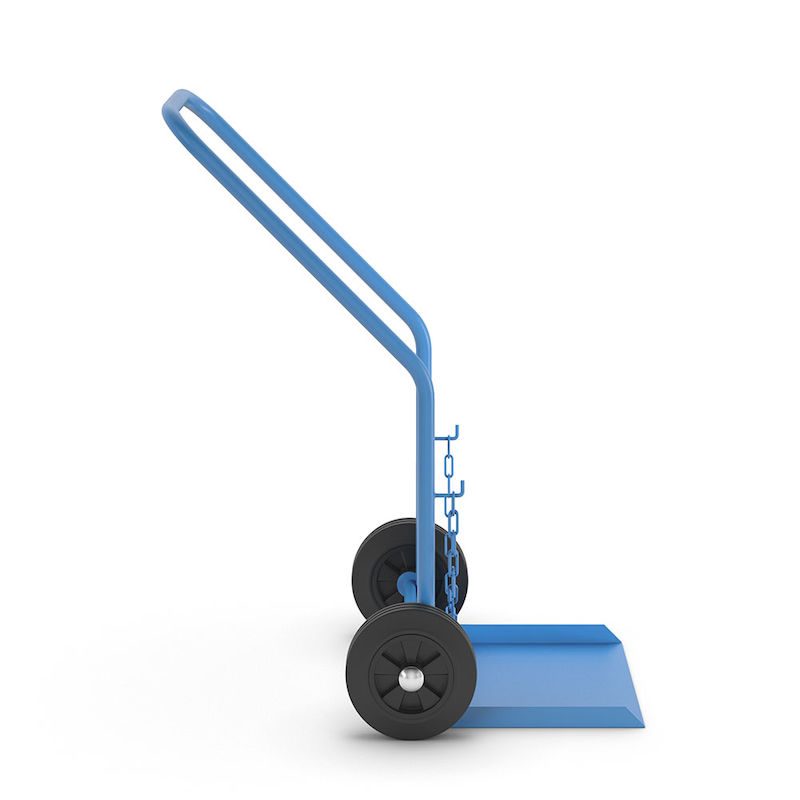 Gasflaskevogn Ergo, til 1 propangasflaske, indhold 27 / 40 l, massive gummihjul. Kvalitetspulverlakeret stålkonstruktion i lyseblå RAL 5012.