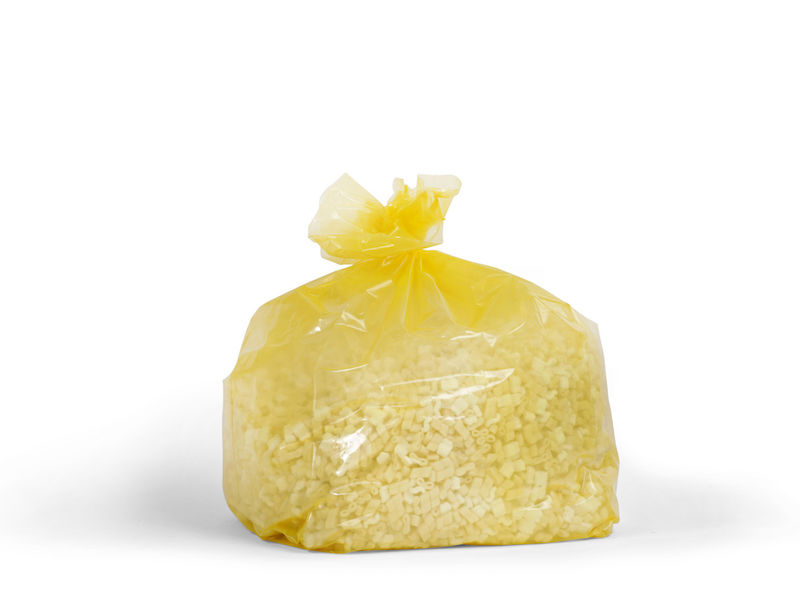 Affaldssække af polyethylen, 240 l, LxBxH 650 x 550 x 1350 mm, 80 µm, gul-transparent, 100-pak. PREMIUM-affaldssække er lavet af udvalgt genbrugsgranulat. Topmoderne produktionsmetoder sikrer en ensartet høj kvalitet – det er det, det registrerede varemærke PREMIUM står for. Affaldsposerne, der er lavet af LDPE, har en usædvanligt høj gennembrudsresistens og slidstyrke. Vores PREMIUM-produkter overholder ligeledes ekstremt høje krav.