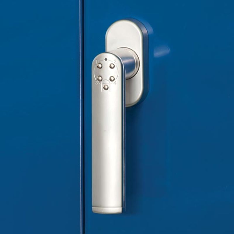 Skab Alexander med elektromekanisk håndtag, H 895 mm, D 600 mm, hvid. Brandisolerede og aflåselige kemikalieskabe. Ved opbevaring af kemikalier/gifte, brandfarlige eller andre farlige emner skal der være god ventilation i skabene. De er derfor udstyret med ventilationskanal og krave til tilslutning af centraludsugning. Hylderne har opbukkede kanter for at forhindre, at væske løber af ved eventuelt spild. Helhvidt eller hvidt korpus med brune låger. Med elektromekanisk håndtag.