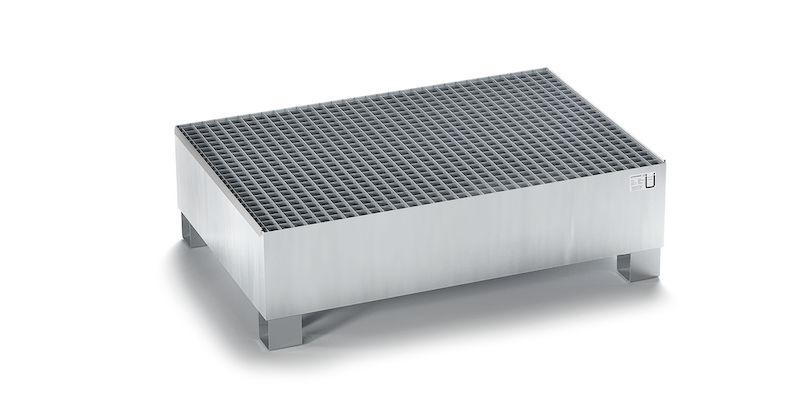 Opsamlingsbakke Moa, LxBxH 1200 x 800 x 360 mm, godkendt, varmgalvaniseret, med gitterrist.
