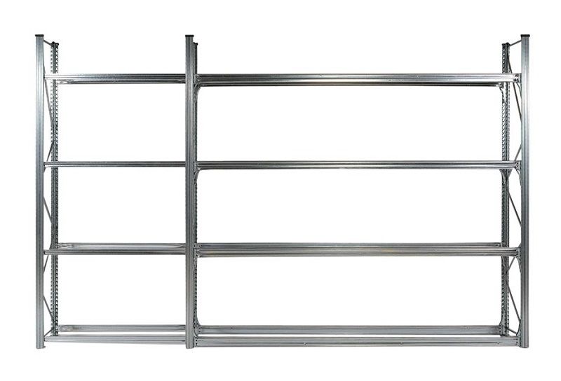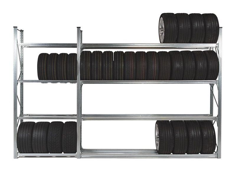 Dækreol Flex, dybde 410 mm. Professionel dækopbevaring fremstillet i galvaniseret stål. Enkel at monterer (ingen bolte eller skruer). Gavle levereres monterede. Høj belastningskapacitet Lav egenvægt. Højde 2000 – 4500 mm. Bredde 1200 – 2700 mm. Flytbare bærebjælker, med 33 mm’s interval.