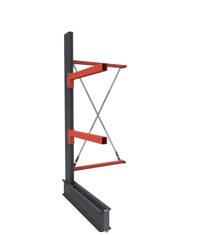 Grenreol Igor, enkeltsidet, HxB 3000 x 1200 mm, afstand 1000 mm, tilbygningssektion. Komplet grenreol med standere, fødder, arme, længde- og krydssamlinger samt betonskruer til forankring i underlaget. Oplyst lastkapacitet pr. støtte inklusive fodbjælke.