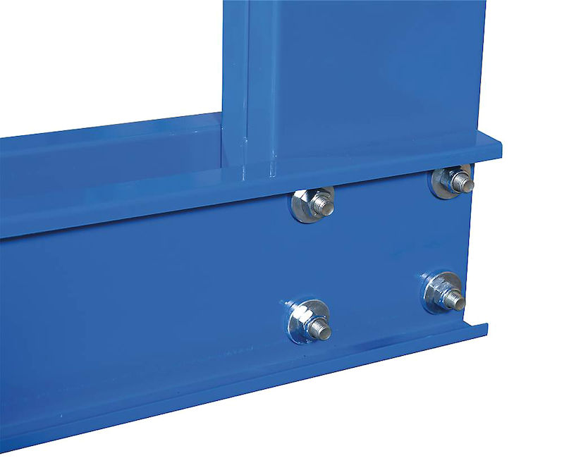 Lakeret i slidstærk pulverlak i standardfarve; blå søjler og afstiversektioner samt orange arme.