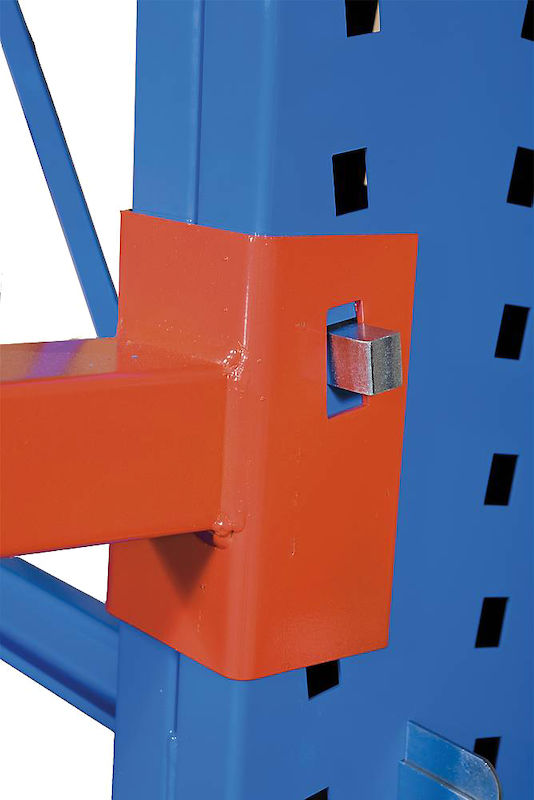 Lakeret i slidstærk pulverlak i standardfarve; blå søjler og afstiversektioner samt orange arme.