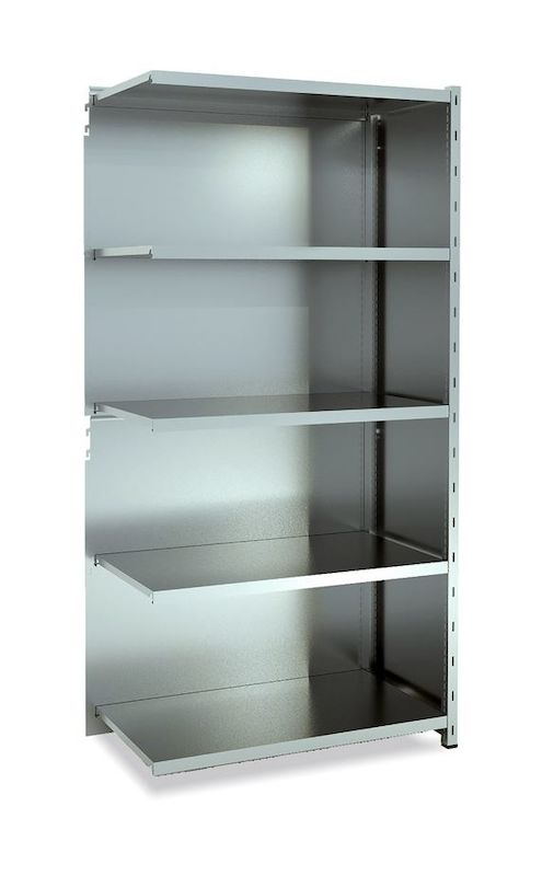 Lagerreol Gerdmansreolen Galvaniserad, lukkede gavle og bagbeklædning, tilbygning, BxDxH 965x500x1960. Gerdmansreolen er overordentlig solid og holdbar. Reolen kan udvides med skuffer, værktøjstavler, aflastningsplader, hængemapperammer for bare at nævne nogle få muligheder fra vores brede tilbehørssortiment. Alle dele til gerdmansreolen kan købes enkelvis, hvilket gør den til en af markedets mest fleksible lagerreoler. Design din egen reol som tager udgangspunkt i dine specielle behov og som udnytter dine lokaler så effektivt som muligt. Gerdmansreolen er fremstillet af kraftigt materiale og klarer en belastning pr. hylde på 225 kg, hvis man komplementerer hylden med en forstærkningsprofil. Gerdmansreolen er enkel at samle og skille ad. Hylderne flyttes enkelt ved hjælp af små hyldebærere, helt uden brug af værktøj. Gulvskåner medfølger. Reolen skal forankres i væg eller gulv. Beslag kan tilkøbes.