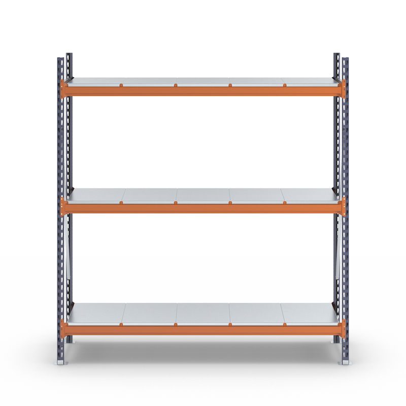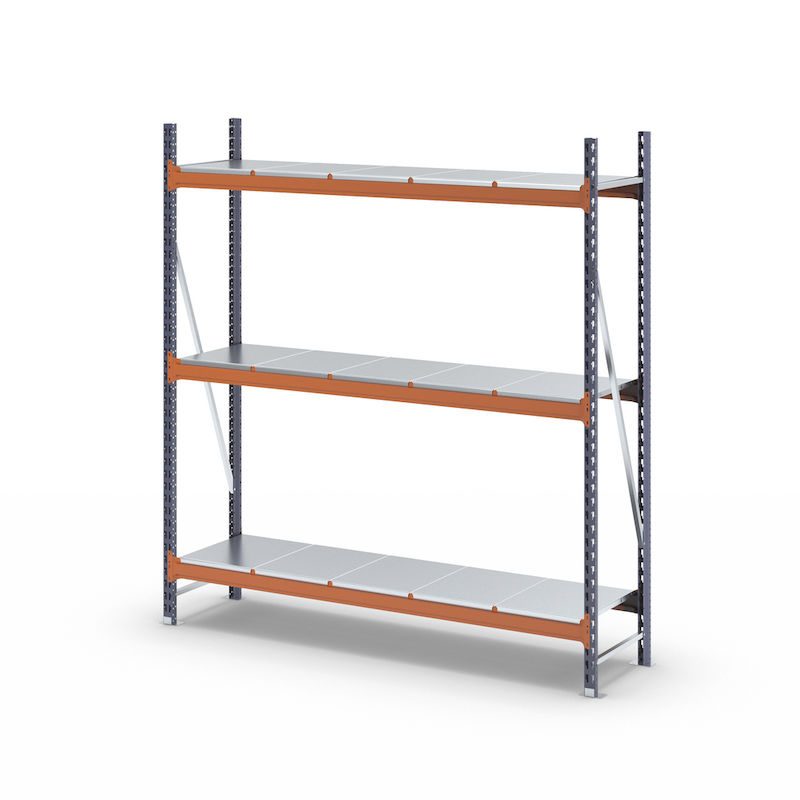Lagerreol Aleyna, belastning pr. sektion 1600 kg, med stålpladehylder, HxBxD 2000 x 1900 x 500 mm, grundsektion.