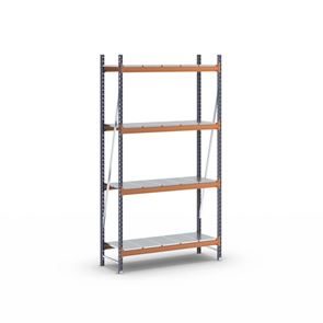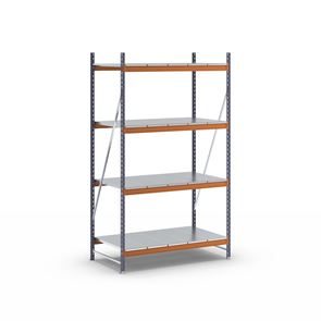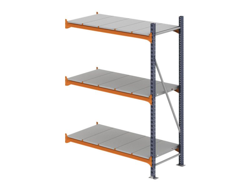 Lagerreol Aleyna, belastning pr. sektion 1600 kg, med stålpladehylder, HxBxD 2000 x 1900 x 600 mm, tilbygningssektion.