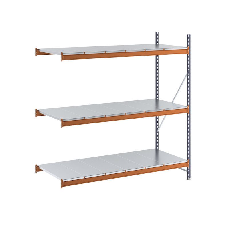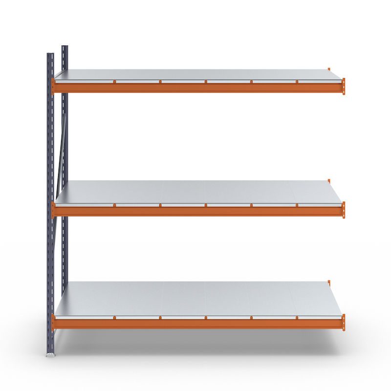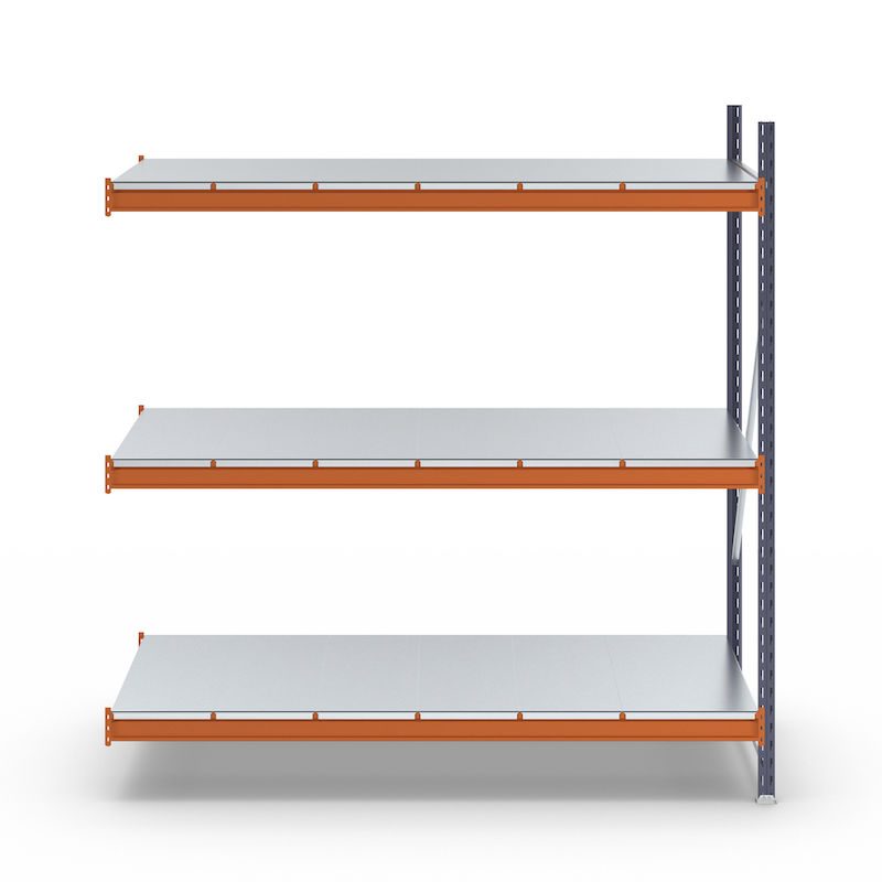 Lagerreol Aleyna, belastning pr. sektion 1600 kg, med stålpladehylder, HxBxD 2000 x 1900 x 800 mm, tilbygningssektion.