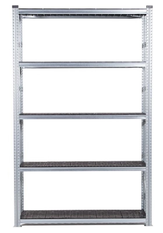Lagerreol Flex, H 2500 mm grundsektion 1576x600, 5 stk sorte fødevaregodkendte perforerede hylder. Et fleksibelt reolsystem af galvaniseret stål med mange anvendelsesområder. Lav egenvægt – høj belastning, 135-350 kg/hylde. Flytbare bærebjælker, med 33 mm’s interval. Hylder til forskellige arbejdsmiljøer. Enkel at monterer (ingen bolte eller skruer). Kan anvendes fra begge side, da der ikke behøves stabiliserings kryds. Gavle levereres monterede, bærebjælker og metalfødder indgår i hver sektion. Plasthylderne er perforerede og kan således anvendes i miljøer med sprinklersytem da vandet kan løbe gennem hylderne. Alle hylderne er desuden fødevaregodkendte.