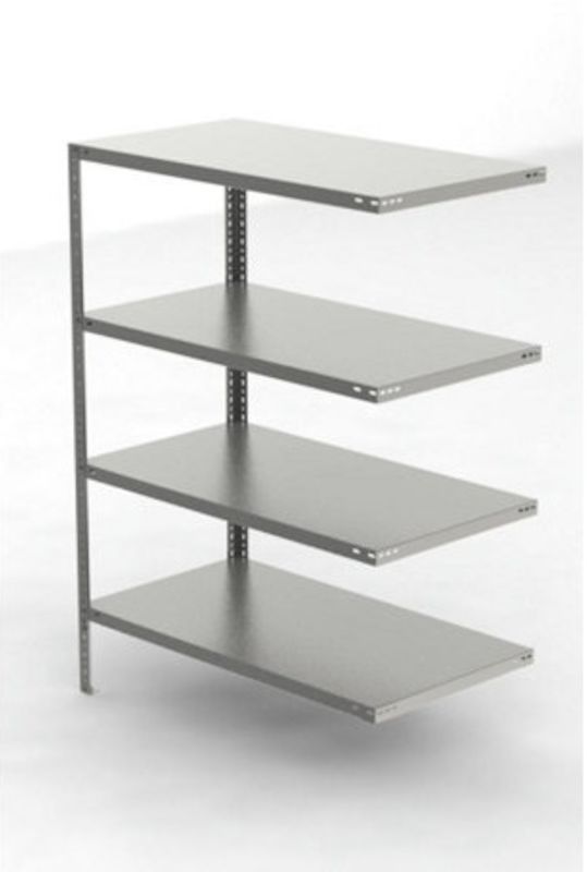 Lagerreol Purmo i rustfri stål. Materialet (EN 1.4301) er bestandig mod varme, kulde, fugt og mange kemikalier. Let at rengøre og desinficere, også med højtryks- og damprensere. Ideel til storkøkkener, gastronomi, medicinsk udstyr, laboratorier og kølerum. Skruereol-system. Opbevaringsreolen har høj lagerkapacitet med store hylder, tæt hyldeforbindelse mellem grund- og tilbygningsreoler samt små hyldemonteringstrin på 25 mm. Skruesamling uden diagonalstivere. Stabilisering med hjørneplader og knudeplader. Fri adgang fra begge sider. Uegnet til brug i miljøer med aggressive dampe. Højde 1500 mm, tilbygningssektion, 1100 x 600 mm.