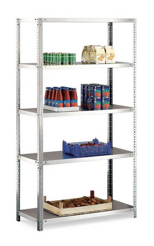 Lagerreol Purmo i rustfri stål, reolhøjde 1500 mm. Materialet (EN 1.4301) er bestandig mod varme, kulde, fugt og mange kemikalier. Let at rengøre og desinficere, også med højtryks- og damprensere. Industrireol ideel til storkøkkener, gastronomi, medicinsk udstyr, laboratorier og kølerum. Skruereol-system. Opbevaringsreolen har høj lagerkapacitet med store hylder, tæt hyldeforbindelse mellem grund- og tilbygningsreoler samt små hyldemonteringstrin på 25 mm. Skruesamling uden diagonalstivere. Stabilisering med hjørneplader og knudeplader. Fri adgang fra begge sider. Uegnet til brug i miljøer med aggressive dampe.