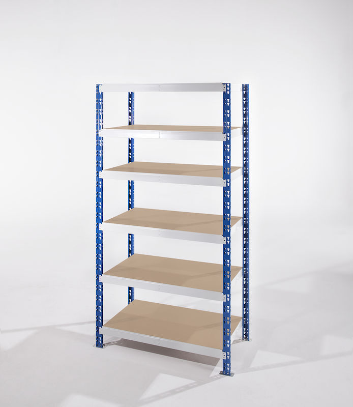 Lagerreol Jolene, spånpladehylder, HxBxD 1976 x 1050 x 500 mm, grundsektion. Reolstativerne er udstyret med galvaniserede fodplader (98 x 51 mm), som øger de angivne hyldehøjder med 1 mm hver. Skruer og dyvler til fodpladerne medfølger ikke.